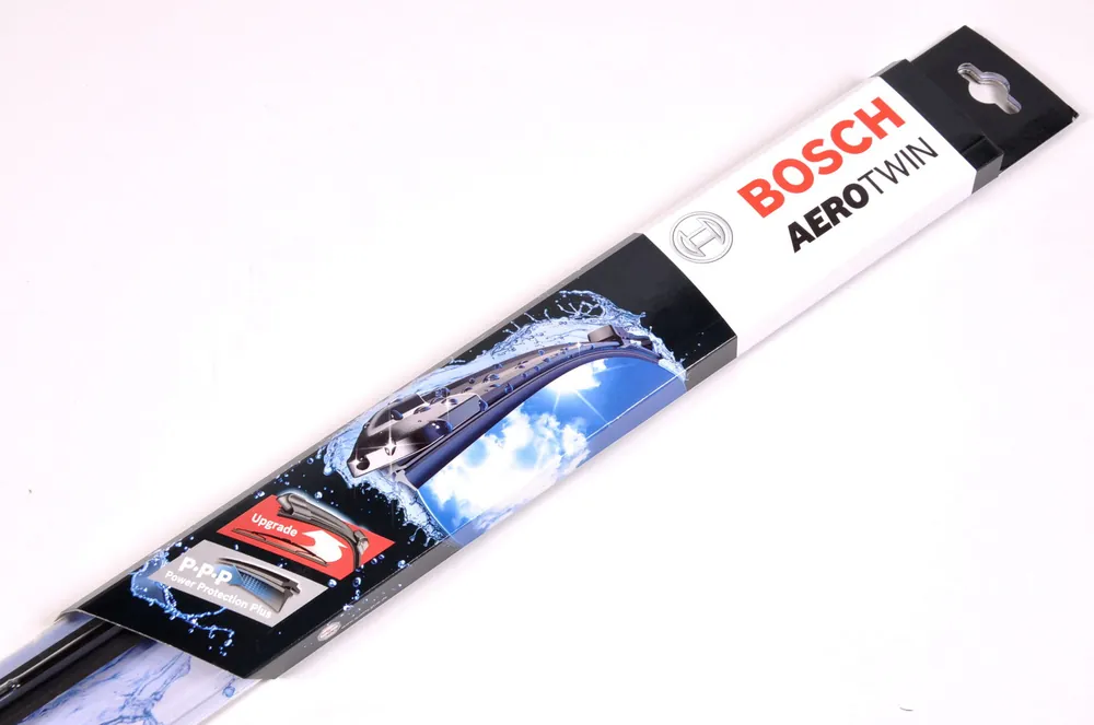 Bosch Aerotwin to seria nowoczesnych, bezprzegubowych wycieraczek, nie posiadających metalowych przegubów. Płaska i sprężysta szyna Evodium, odpowiadająca za właściwe przyleganie wycieraczki do szyby, zastąpiła tradycyjną, szkieletową konstrukcję. Długość pióra zbierającego wodę oraz sposób mocowania, dopasowane są do konkretnego modelu auta.   Największym atutem nowych wycieraczek Bosch Aerotwin jest, oprócz bardzo dobrego przylegania do szyby, jakość i trwałość wykonania czyli to, co powinno charakteryzować produkty klasy Premium. Ze względu na nieprzeciętne właściwości nowego rodzaju wycieraczek, wielu producentów aut zdecydowało o wprowadzeniu Bosch Aerotwin na pierwszy montaż.    Płaskie wycieraczki Bosch spisują się bardzo dobrze w każdych warunkach pogodowych. Szczególne znaczenie ma korpus wycieraczki, który pełni jednocześnie funkcję spojlera dociskającego wycieraczkę do szyby przy większych prędkościach. Całość uzupełnia adapter Quick-Clip, dzięki któremu montaż wycieraczek Aerotwin staje się bezproblemowy.