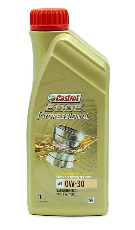 Opis produktu i zastosowanieCastrol EDGE Professional spełnia najnowsze światowe wymagania odnośnie ochrony środowiska potwierdzone certyfikatem „CO2 Neutral”. Podwójna filtracja sprawdzona oryginalnym systemem kontroli jakości cząstek stałych OPMS (Optical Particle Measurement System) i fluorescencyjny kolor oleju są gwarancją najwyższej jakości przez cały okres eksploatacji oleju.ZastosowanieCastrol EDGE Professional A5 0W-30 to syntetyczny olej silnikowy, odpowiedni do zastosowania we wszystkich silnikach benzynowych i Diesla, w których producenci wymagają lepkości 0W-30 i jakości API SL, ILSAC GF-2, ACEA A1/B1, A5/B5 lub wcześniejszych. Castrol EDGE Professional A5 0W-30 został zaaprobowany i jest rekomendowany do silników Volvo. Volvo rekomenduje oleje Castrol EDGE Professional.Zalety i korzyściCastrol EDGE Professional A5 0W-30 zapewnia podwojenie trwałości filmu olejowego, zapewniając maksymalne osiągi najnowszej generacji silników, wykonanych w ciasnych pasowaniach, wymagających olejów o niskiej lepkości.Castrol EDGE Professional A5 0W-30:Redukuje szkodliwe osady, zwiększając wydajność silnika,Zapewnia maksymalny poziom ochrony w każdych warunkach, nawet w niskich temperaturach,Pozwala osiągnąć maksymalną moc, nawet w warunkach wysokich obciążeń,Utrzymuje wysoką sprawność silnika, udowodnioną w niezależnych testach.UWAGA:Nie stosować w wymaganiach Volvo VCC RBS0-2AE