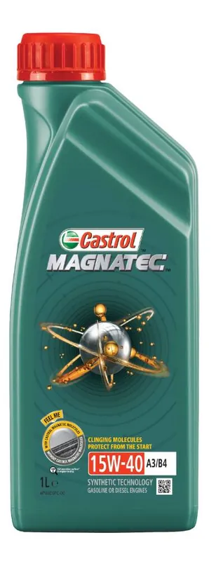 Opis produktu i zastosowanieCastrol Magnatec 15W-40 A3/B4 jest odpowiedni do samochodów z silnikami benzynowymi oraz Diesla gdzie producenci rekomendują olej o poziomie jakości ACEA A3/B3, A3/B4, API SL/CF lub wcześniejsze specyfikacje w lepkości 15W-40. Castrol Magnatec 15W-40 A3/B4 jest zaaprobowany przez grupę Volkswagen oraz Mercedes Benz do silników benzynowych i Diesla, wszędzie tam gdzie są wymagane specyfikacje VW 501.01 / 505.00 lub MB-Approval 229.1 w lepkości 15W-40.Zalety i korzyści:Inteligentne Molekuły Castrol Magnatec zapewniają:przywieranie do wewnętrznych elementów silnika formułując dodatkową warstwę, która chroni w czasie startu i późniejszej eksploatacji,wiązanie z powierzchnią metalową smarowanych części silnika zapewnia większą ochronę przeciwzużyciową,dodatki syntetyczne zapewniają ochronę zarówno w niskich jak i wysokich temperaturach pracy,ochronę w każdych warunkach eksploatacji i różnych stylach jazdy.
