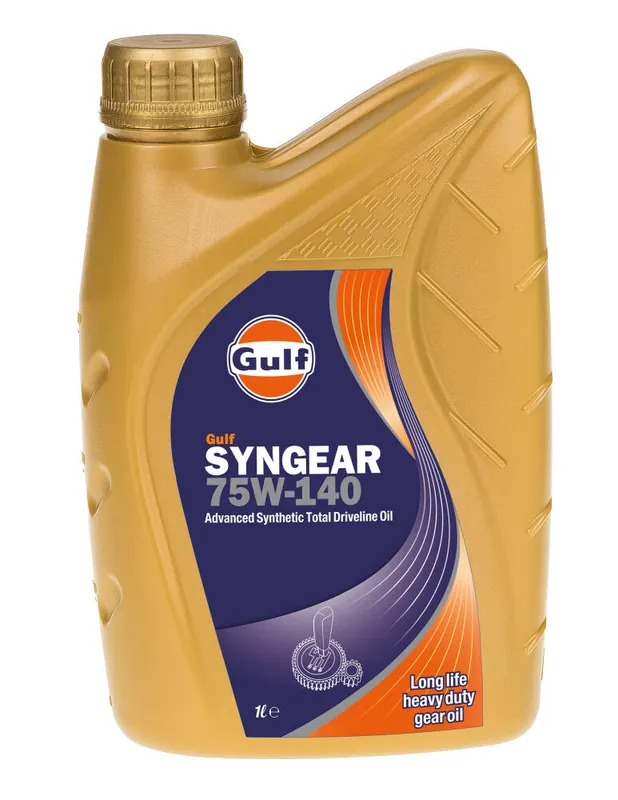Opis produktu i zastosowanieGulf Syngear 75W-140 jest termostabilnym w pełni syntetycznym olejem przekładniowym opracowanym zgodnie z założeniami polityki T.D.L. (Total Drive Line) i zaprojektowanym w celu spełnienia ostrych wymagań określonych dla układów przeniesienia napędu stosowanych w lekkich i wysokoobciążonych pojazdach użytkowych. Gulf Syngear 75W-140 jest stworzony z syntetycznych materiałów bazowych i zaawansowanych technologicznie eksploatacyjnych dodatków uszlachetniających w celu zapewnienia doskonałej ochrony części składowych układów przeniesienia napędu, lepszego przełączania biegów i udoskonalonej ochrony synchronizatora. Szeroki zakres temperatur pracy i wspaniała płynność w niskich temperaturach powodują mniejsze zużycie paliwa. Gulf Syngear 75W-140 przewyższa wymagania Scania STO 1:0 oraz wielu innych znanych światowych specyfikacji.Gulf Syngear 75W-140 jest odpowiedni do zastosowań wymagających stosowania jednego oleju w tylnych mostach i w zsynchronizowanych i niezsynchronizowanych przekładniach ręcznych oraz do stosowania w układach przeniesienia napędu wymagających stosowania olejów, które spełniają wymagania norm Scania STO 1:0, w drogowych i innych niż drogowe zastosowaniach przekładniowych.