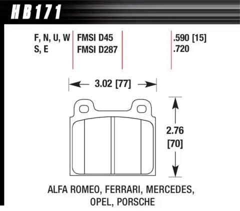 Klocki hamulcowe samochodoweHB171F.590 – HAWK Performance HPS(komplet na oś przednią)HAWK PERFORMANCE HPSKlocki hamulcowe High Performance Streetsą znane ze względu na zwiększanie siły hamowania w pojazdach dopuszczonych do ruchu ulicznego.Mieszanka High Performance Street oferuje wyższy współczynnik tarcianiż standardowe klocki hamulcowe i może zapewnić o 20-40% większą siłę hamowania i wyższą odporność na blaknięcie niż większość standardowych zamienników klocków.Mniejsze zanikanie oznacza lepsze wyczucie pedałui bardziej stałą wydajność w wytrzymałym klocku hamulcowym, który generuje mniej kurzu.Parametry techniczneSzerokość [mm]:77Wysokość [mm]: 70Grubość podkładki [mm]: 15FMSI:D0045, D0287Rodzaj osi: przedniaMax temp pracy:370°CWaga:1.22kg