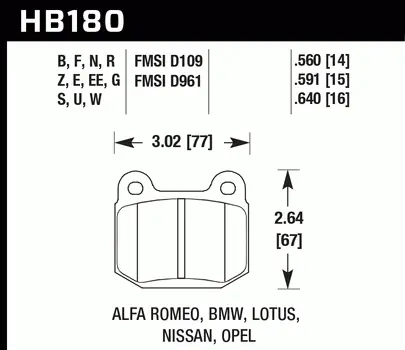 Klocki hamulcowe samochodoweHB180F.560 – HAWK Performance HPS(komplet na oś tylną)HAWK PERFORMANCE HPSKlocki hamulcowe High Performance Streetsą znane ze względu na zwiększanie siły hamowania w pojazdach dopuszczonych do ruchu ulicznego.Mieszanka High Performance Street oferuje wyższy współczynnik tarcianiż standardowe klocki hamulcowe i może zapewnić o 20-40% większą siłę hamowania i wyższą odporność na blaknięcie niż większość standardowych zamienników klocków.Mniejsze zanikanie oznacza lepsze wyczucie pedałui bardziej stałą wydajność w wytrzymałym klocku hamulcowym, który generuje mniej kurzu.Parametry techniczneSzerokość [mm]: 77Wysokość [mm]: 67Grubość podkładki [mm]: 14/15/16Rodzaj osi: tylną i przednią