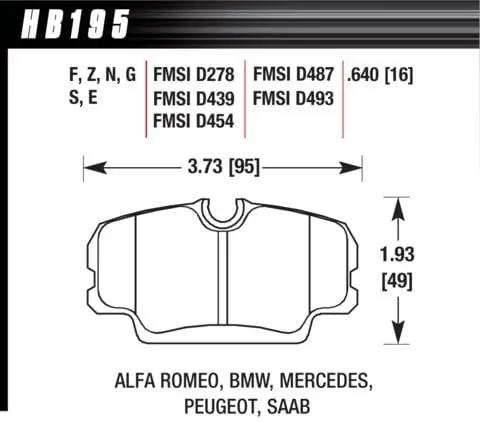 Klocki hamulcowe samochodoweHB195S.640 HAWK Performance HT-10(komplet na oś przednią)HAWK PERFORMANCE HT-10Klocki hamulcowe Hawk HT-10 oferują liniowy zakres siły hamowania w średnich temperaturach. Łatwa kontrola i dozowalność to zaleta tych klocków. W połączeniu z niskim zużyciem tarcz i niewielkim pyleniem sprawia to że to jedna z częściej wybieranych mieszanek w aplikacjach torowo-ulicznychWysoki współczynnik tarciaDoskonała modulacjaTemperatura pracy 150-700°COptymalna temperatura pracy 260-590°CKlocki hamulcowe Hawk Performance nie posiadają homologacji ECE R90Klocki hamulcowe Hawk Performance nie posiadają homologacji ECE R90Parametry techniczneZastosowanie:MotorsportSzerokość [mm]:95Wysokość [mm]:49Grubość [mm]:16FMSI:D0278, D0321, D0439, D0454, D0487, D0493Oś:przedniaMax temp pracy:705°CWaga:1.16kg