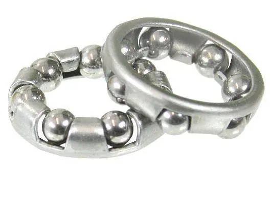 Łożysko kulkowe (wianek) TI-675, 5/32″x7 Koszyk (tzw. wianek) wraz z kulkami wykonany z wysokiej jakości stali.Koszyk kulek typu zatrzaskowego. Łożysko stosowane między innymi w pedałach rowerowych. Cechy produktu Ilość kulek: 7Średnica kulki: 5/32 cala, czyli ~3,97 mmŚrednica wewnętrzna wianka/koszyka: ~11,2 mmŚrednica zewnętrzna wianka/koszyka: ~18,4 mm Główne zadania koszyka są następujące: – Oddzielenie elementów tocznych w celu zmniejszenia momentu tarcia i ograniczenia ilości ciepła powstającego w łożysku w wyniku tarcia.- Utrzymywanie równomiernego rozkładu elementów tocznych na całym obwodzie w celu zapewnienia optymalnego rozkładu obciążenia i cichej, równomiernej pracy łożyska.- Prowadzenie elementów tocznych w strefie nieobciążonej w celu poprawy warunków toczenia i zapobiegania występowania poślizgów mających szkodliwy wpływ na trwałość łożyska.- Utrzymywanie elementów tocznych w łożyskach rozłącznych, gdy jeden z pierścieni jest zdejmowany podczas montażu lub demontażu. Cena dotyczy jednego wianka łożysk.