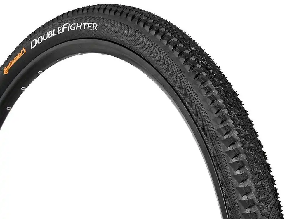 Double Fighter III – miejski poszukiwacz przygód Opona Double Fighter III to nowym designie to podwójny bieżnik, lekki i cichy na asfalcie, ale przyczepny na torach i drogach szutrowych.Świetnie sprawdzi się podczas jazdy w mieście, dojazdów do pracy, wycieczki na ścieżkach rowerowych jak i na leśnych duktach i single trackach. Podwyższone kostki boczne zapewniają dobrą przyczepność w zakrętach, a zmniejszony bieżnik na czole opony powoduje lekką i cichą jazdę na wprost. Opona ta jest świetnym rozwiązaniem, które łączy w sobie właściwości opon terenowych z miejskimi.Solidne gumowe ściany boczne sprawiają, że jest ona odporna na uszkodzenia nawet na nierównym terenie. Najważniejsze cechy produktu: Producent: ContinentalModel: Double Fighter IIIRozmiar: 27,5″ x 2.0″Etrto: 50-584 Typ: drutówkaPrzeznaczenie: MTB, Trail, Cross Country, miasto, warunki twarde, suche Pasek odblaskowy: NIEZalecane ciśnienie powietrza: 3,4 BAR (50 PSI) Maksymalne ciśnienie powietrza: 4,5 BAR (65 PSI) Gęstość oplotu: 3 warstwy => 180 TPI Nr katalogowy produktu: 0101237Średnia waga:~ 845 g Zastosowane technologie Dopasowanie rozmiaru opony do rozmiaru obręczy (ETRTO) W celu wyjaśnienia metodologii określania rozmiarów, opony rowerowe Continental wymiarowane są według formuły ETRTO (Europejska Organizacja Techniczna do spraw Opon i Obręczy): szerokość opony [mm] x średnica obręczy [mm], na przykład 23-622. Informacje te znajdują się na ściance bocznej opony. Alternatywny sposób podawania rozmiaru, np. 23x700C lub 26 x 2,4 nie podaje jasnych informacji o wymaganej średnicy obręczy. Z tego względu w przypadku jakichkolwiek wątpliwości należy zawsze korzystać z uznawanego na świecie standardu ETRTO. Ogólnie firma Continental zaleca montowanie opon rowerowych na obręczach klinczerowych (o zagiętych krawędziach), ponieważ ten rodzaj obręczy pewniej utrzymuje oponę, szczególnie przy ciśnieniu powietrza powyżej 44 PSI. Pomiary w przypadku obręczy klinczerowych, na przykład 13C-622, podawane są jako szerokość obręczy w mm (wymiar A), „C” oznacza crotchet (z franc. haczyk) oraz średnicę obręczy (wymiar D). Jeśli informacja o rozmiarze starych obręczy nie jest czytelna, szerokość obręczy można zmierzyć za pomocą suwmiarki, mierząc odległość między zakrzywionymi krawędziami. Listę obręczy i pasujących do nich opon można otrzymać od organizacji ETRTO. Ciśnienie powietrza w ogumieniu Ciśnienie powietrza wpływa bezpośrednio na prowadzenie, trwałość i opór toczenia roweru. Opona może działać prawidłowo tylko w określonym zakresie ciśnienia. Oprócz objętości i wagi układu rower/rowerzysta, również przeznaczenie opony jest tu istotne. Każda opona Continental ma zalecany zakres ciśnienia powietrza podany na ściance bocznej. Jeśli ciśnienie jest zbyt niskie, opona szybciej się zużywa, zwiększa się także ryzyko przebicia i uślizgu opony. Z czasem pojawiają się również małe pęknięcia. Z kolei zbyt wysokie ciśnienie powoduje, że opona jest bardzo twarda i niekomfortowa. Trakcja, przyczepność i opory toczenia mogą się pogorszyć. Wszystkie systemy ogumienia rowerowego stopniowo tracą ciśnienie. Z tego powodu należy często je kontrolować. Kolarze MTB i turystyczni powinni sprawdzać ciśnienie przynajmniej raz w miesiącu. Szosowcy raz na tydzień. W przypadku stosowania dętek light i supersonic ciśnienie należy sprawdzać przed każdą jazdą. Waga opon Stworzenie lekkiej opony to cel projektantów i pracowników linii produkcyjnej. Czasem jednak zdarzają się odchylenia od wagi podanej w katalogu. Wynikają one z pewnej tolerancji grubości oplotu i gumy, koniecznej w procesie ręcznej produkcji. Waga podana w katalogu jest określana podczas stworzenia serii przedprodukcyjnej i następnie wielokrotnie weryfikowana. W zależności od modelu, możliwe są odchylenia do 10 % w stosunku do danych katalogowych. Co to jest TPI? Konstrukcja osnowy – budowa głównego oplotu. Osnowa jest głównym oplotem wszystkich opon. Konstrukcja osnowy, materiał i gęstość nici zależą od wymagań stawianych oponie. Firma Continental generalnie stosuje wysokiej jakości osnowy wykonane z tkanych, a następnie gumowanych nici nylonowych: Nylon dobrze łączy się z kauczukiem i wykazuje dobrą odporność w każdej pogodzie. Gęstość nici nylonowych decyduje o specyficznych własnościach opony. Gęstość nici jest podawana w TPI (threads per inch), czyli skrót ten oznacza liczbę splotów na 1 cal. Rozpowszechniły się tkaniny o 22 TPI, 28 TPI, 60 TPI i 110 TPI. Bardzo drobny splot tkaniny sprawia, że opona jest elastyczna i chroni osnowę przed przebiciem. Luźny splot tkaniny to większa odporność na przecięcie i większa wytrzymałość opony. Wybór splotu zależy od przeznaczenia opony. Standardem jest trzywarstwowa osnowa podstawowa. Dodatkowa ochrona Breaker może być umieszczana pod bieżnikiem w celu jeszcze lepszego wzmocnienia opony i zwiększenia ochrony przed przebiciem. W zależności od przeznaczenia stosowane są różne struktury ochronne i materiały. Należą do nich na przykład wysokoelastyczny kauczuk specjalny, stosowany w rodzinie opon Plus, a także tkaninowe warstwy ochronne PolyX i Vectran™ w sportowych oponach wyścigowych. Budowa opony jest opisana w jej specyfikacji technicznej. Podawana jest liczba warstw, suma TPI i rodzaj ochrony przed przebiciem: 3/180 + Vectran™ oznacza trzy warstwy tkaniny 60 TPI z dodatkową ochroną Vectran™ Breaker.