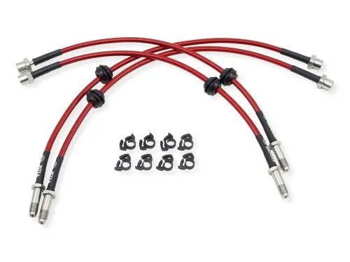 Przewody hamulcowe w stalowym oplocie do BMW 3 (E46) 1998-2005 Wszystkie wersje (!oprócz M3 E46!)Benzyna: 316i, 318i, 320i, 323i, 325i, 328i, 330iDiesel: 318d, 320d, 330d Zestaw składa się z 4 sztuk przewodów Znaczenie wydajnego i precyzyjnego działania układu hamulcowego zostało dowiedzione wielokrotnie na każdym torze wyścigowym świata. Również w warunkach drogowych perfekcyjna dozowalność i czucie hamulca podnoszą bezpieczeństwo i dają pewność siebie, której oczekujesz. Zestaw przewodów hamulcowych w stalowym oplocie jest wyprodukowany specjalnie dla Ciebie przy użyciu najwyższej jakości końcówek ze stali nierdzewnej zaciśniętych bezpośrednio na nierozciągliwym teflonowym przewodzie w gęstym stalowym oplocie. Dzięki szczegółowej bazie danych zestaw przygotowany zostanie pod konkretny model i rocznik samochodu lub motocykla, gwarantując wygląd, jakość i wydajność, jakiej wymagasz. Dzięki temu, że przewód w oplocie nie zmienia pod ciśnieniem swej objętości, zapomnisz o miękkim wpadającym pedale hamulca, a precyzja hamowania da Ci dużo lepszą kontrolę nad prędkością właśnie wtedy, gdy potrzebujesz jej najbardziej. Wszystkie przewody hamulcowe objęte są dożywotnią gwarancją producenta! Wszystkie końcówki wykonane są ze stali nierdzewnej – w przeciwieństwie do tańszych przewodów z końcówkami ze stali ocynkowanej. W zestawach gdzie są końcówki banjo (oczkowe) w zestawie są także nowe śruby i podkładki miedziane. Ze względu na bardzo dużą bazę modelowo – kolorystyczną większość zestawów dostępna jest na zamówienie. Standardowy czas oczekiwania wynosi od 1 do 4 dni roboczych (zazwyczaj 1 do 2 dni). Przy zakupie prosimy o podanie koloru przewodów wybranego ze zdjęcia z galerii. W miarę możliwości prosimy też o informację na temat wersji silnikowej, rocznika, rodzaju napędu (tam gdzie były różne, np Audi), oraz czy były jakieś zmiany w układzie hamulcowym (np. zaciski z innego modelu samochodu).