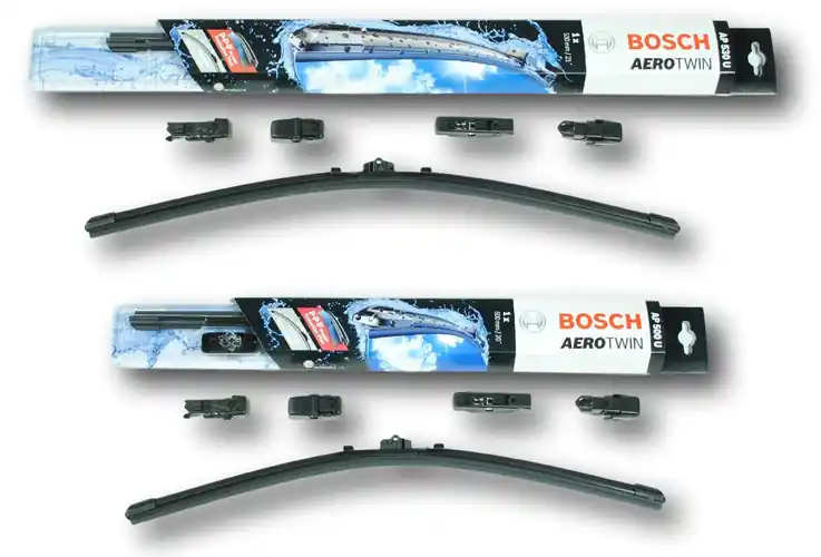 Nowe wycieraczki – zapakowane w oryginalne opakowanie producenta – cena zakupu dotyczy 1kompletu (strona kierowcy i pasażera).Wycieraczki Bosch Aerotwin posiadają konstrukcję aerodynamiczną i nie mają klasycznych przegubów. W ich wnętrzu znajduje się specjalna szyna stabilizująca Evodium, która odpowiada za przyleganie do szyby i sztywność wycieraczki. Wewnętrzna szyna stabilizująca Evodium została odpowiednio wygięta, a kąt wygięcia został precyzyjnie obliczony dla modeli, w których wycieraczki mają zastosowanie. Do konstrukcji pióra wycieraczki zastosowano 2 rodzaje gumy. Na górze znajduje się część miękka odpowiadająca za cichą pracę, natomiast na dole twarda, która ma za zadanie precyzyjne czyszczenie szyby ze śniegu, wody itp. Dodatkowo pokryta jest specjalną powłoką, powodującą lepszy poślizg na szybie, aby siła tarcia była jak najmniejsza. Wycieraczki Bosch Aerotwin spełniają swoją rolę nawet przy dużych prędkościach, dzięki spojlerowi wbudowanemu na całej długości wycieraczki, który sprawia, że pęd powietrza dociska wycieraczkę do szyby.Zalety wycieraczek Bosch Aerotwin:- Bosch Aerotwin Multi-Clip jest tańszą wersją gamy Aerotwin- precyzyjne wycieranie szyby- zmniejszenie szumu powietrza poprzez bardziej opływowy kształt- nie zamarzanie zimą poszczególnych elementów wycieraczki dzięki zastosowaniu wewnętrznej szyny Evodium- nowoczesny wygląd- spojler wmontowany na całej długości, poprawiający przyleganie wycieraczki do szyby przy dużych prędkościach.Jak dbać o wycieraczki:- pamiętaj, aby dbać o gumę wycieraczki usuwając z niej brud, owady itp., które osiadły podczas jej pracy (wykorzystać można do tego łagodny detergent); zapominanie o usuwaniu zanieczyszczeń, może doprowadzić do uszkodzenia gumy wycieraczki- nigdy nie używaj wycieraczek, gdy szyba jest sucha; tarcie gumy po suchej szybie może doprowadzić do szybkiego jej zużycia- jeżeli wycieraczka na szybie podskakuje, może to być oznaką, że ramię wycieraczki jest skrzywione; w takim przypadku należy dokonać jego regulacji- jeżeli planujesz pozostawienie samochodu na słońcu przez kilka dni, ustaw wycieraczki tak, aby nie stykały się z szybą- po wizycie na myjni, pamiętaj, aby zawsze dokładnie oczyścić szybę, ponieważ znajdujący się na niej wosk, może powodować przeskakiwanie wycieraczki- pamiętaj również, aby nie uruchamiać wycieraczek na zamarzniętej szybie; może to bowiem doprowadzić do ich uszkodzenia lub oderwania gumy od mocowania.Czy wiesz że:- pierwsza wycieraczka wprowadzona została przez Boscha w okresie międzywojennym w 1926r. i napędzana była silnikiem elektrycznym- pierwszą wycieraczkę bezprzegubową – Bosch wprowadził do produkcji w 1999r.- 750 000 cykli oczyszczania! Tak wycieraczki Bosch są testowane pod kątem wytrzymałości mechanicznej- wycieraczki Bosch są przystosowane do pracy w temperaturach od -30 do +80 stopni Celsjusza.
