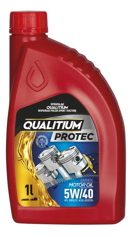 Opis produktu i zastosowanieSyntetyczny olej silnikowy do samochodów osobowych i lekkich dostawczych.samochody osobowe i lekkie dostawcze,do silników benzynowych i Diesla,silniki z turbodoładowaniem i wtryskiem bezpośrednim,można także stosować w samochodach z silnikami zasilanymi gazem LPG,trudne warunki pracy – jak częsta jazda po autostradzie czy w ruchu miejskim.WłaściwościOlej Qualitium Protec 5W/40 zapewnia mniejsze zużycie elementów silnika w wysokich temperaturach pracy, nawet do 15% – w porównaniu do analogicznych olejów.zapewnia skuteczną ochronę tłoków w wysokich temperaturach,wyróżnia się doskonałą odpornością na utlenianie,pozwala na uzyskanie maksymalnych osiągów silnika,zapobiega osadzaniu się zanieczyszczeń w silniku,gwarantuje stabilność parametrów zarówno w niskich i wysokich temperaturach.