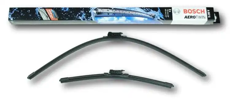 Nowe wycieraczki – zapakowane w oryginalne opakowanie producenta – cena zakupu dotyczy 1kompletu (strona kierowcy i pasażera).Wycieraczki Bosch Aerotwin posiadają aerodynamiczną konstrukcję i nie mają klasycznych przegubów. W ich wnętrzu znajduje się specjalna szyna stabilizująca Evodium, która odpowiada za przyleganie do szyby i sztywność wycieraczki. Do konstrukcji pióra wycieraczki zastosowano 2 rodzaje gumy. Na górze znajduje się część miękka odpowiadająca za cichą pracę, natomiast na dole twarda, która ma za zadanie precyzyjne czyszczenie szyby ze śniegu, wody itp. Dodatkowo pokryta jest specjalną powłoką, powodującą lepszy poślizg na szybie, aby siła tarcia była jak najmniejsza. Wycieraczki Bosch Aerotwin spełniają swoją rolę nawet przy dużych prędkościach dzięki spojlerowi  wbudowanemu na całej długości wycieraczki, który sprawia, że pęd powietrza dociska wycieraczkę do szyby.Zalety wycieraczek Bosch Aerotwin:- precyzyjne wycieranie szyby- zmniejszenie szumu powietrza poprzez bardziej opływowy kształt- nie zamarzanie zimą poszczególnych elementów wycieraczki dzięki zastosowaniu wewnętrznej szyny Evodium- nowoczesny wygląd- spojler wmontowany na całej długości, poprawiający przyleganie wycieraczki do szyby przy dużych prędkościach.Jak dbać o wycieraczki:- pamiętaj, aby dbać o gumę wycieraczki usuwając z niej brud, owady itp., które osiadły podczas jej pracy (wykorzystać można do tego łagodny detergent); zapominanie o usuwaniu zanieczyszczeń, może doprowadzić do uszkodzenia gumy wycieraczki- nigdy nie używaj wycieraczek, gdy szyba jest sucha;  tarcie gumy po suchej szybie może doprowadzić do szybkiego jej zużycia- jeżeli wycieraczka na szybie podskakuje, może to być oznaką, że ramię wycieraczki jest skrzywione; w takim przypadku należy dokonać jego regulacji- jeżeli planujesz pozostawienie samochodu na słońcu przez kilka dni, ustaw wycieraczki tak, aby nie stykały się z szybą- po wizycie na myjni, pamiętaj, aby zawsze dokładnie oczyścić szybę, ponieważ znajdujący się na niej wosk, może powodować przeskakiwanie wycieraczki- pamiętaj również, aby nie uruchamiać wycieraczek na zamarzniętej szybie; może to bowiem doprowadzić do ich uszkodzenia lub oderwania gumy od mocowania.Czy wiesz że:- pierwsza wycieraczka wprowadzona została przez Boscha w okresie międzywojennym w 1926r. i napędzana była silnikiem elektrycznym- pierwszą wycieraczkę bezprzegubową – Bosch wprowadził do produkcji w 1999r.- 750 000 cykli oczyszczania! Tak wycieraczki Bosch są testowane pod kątem wytrzymałości mechanicznej- wycieraczki Bosch są przystosowane do pracy w temperaturach od -30 do +80 stopni Celsjusza.
