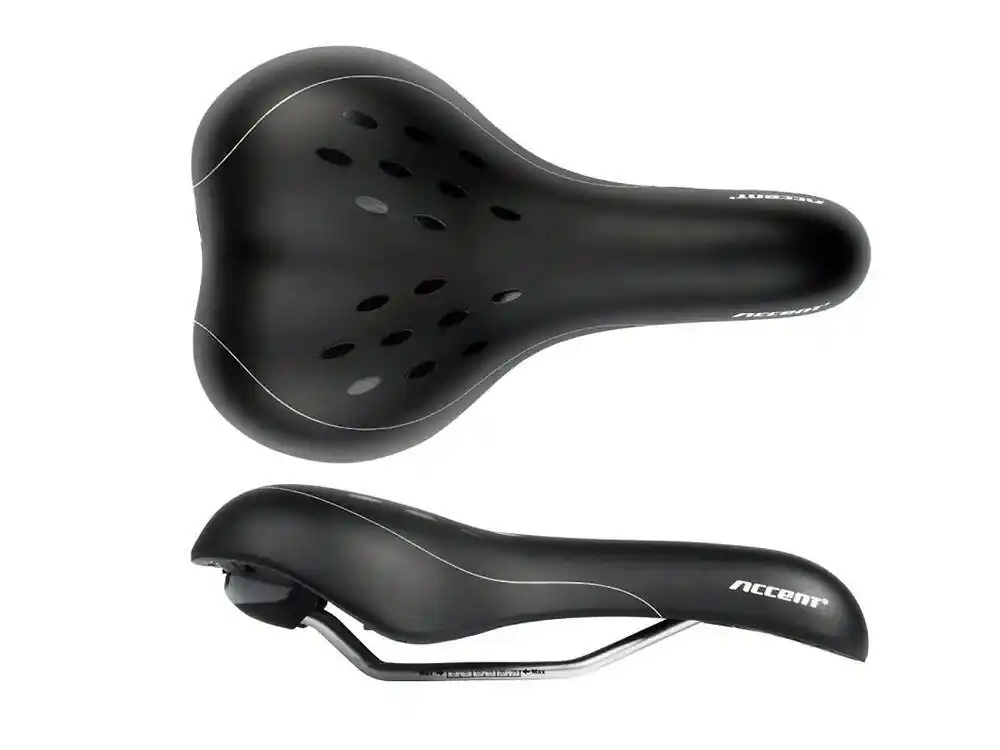 Siodełko Accent Boogie – męskie Bardzo wygodne siodełko męskie do jazdy turystycznej. Kształtowane próżniowo. Wypełnienie z świetnie absorbującej drgania pianki o wysokiej gęstości oraz w części wierzchniej z żelu zapewniającego komfort jazdy.Pokrycie ze skóry syntetycznej. Stalowe pręty. Cechy produktu Długość: 280 mmSzerokość: 175Średnia waga:~ 494 g
