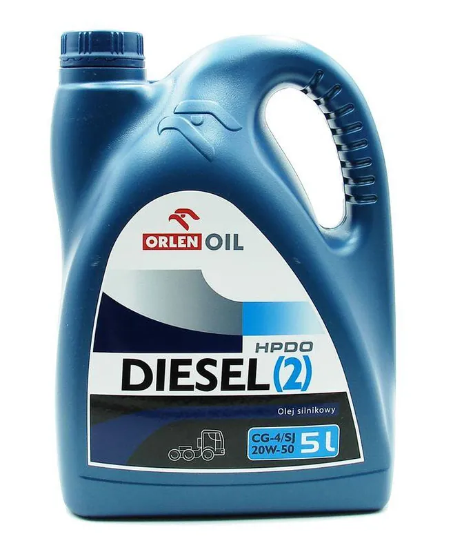 Opis produktu i zastosowanieWysokiej jakości, mineralny olej silnikowy typu HPDO (High Performance Diesel Oil) do mocno i średnio wysilonych silników wysokoprężnych. ORLEN OIL Diesel (2) HPDO jest olejem przeznaczonym do pracy w mocno i średnio wysilonych silnikach wysokoprężnych z turbodoładowaniem lub bez, szczególnie w dużych samochodach ciężarowych, sprzęcie budowlanym i autobusach. Przeznaczony jest także do stosowania w samochodach dostawczych i osobowych z silnikami benzynowymi i Diesla pracującymi w bardzo ciężkich warunkach eksploatacji. Idealny dla firm dysponujących zróżnicowanym taborem, do których zalecane są również oleje niższych kategorii CD, CE, CF-4. Zakres temperatur otoczenia w których olej zachowuje optymalne własności eksploatacyjne to od -15oC do 50oC.Zapewnia:minimalizację zużycia silnika,wysoką czystość silnika,doskonałą ochronę przed korozją,zapobieganie powstawaniu sadzy.