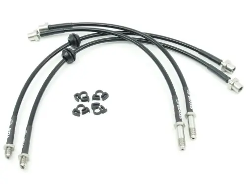 Przewody hamulcowe w stalowym oplocie do: Mercedes A45 AMG W176 Tylko do A45 AMGprzewody nie pasują do innych wersji klasy A Zestaw składa się z 4 sztuk przewodów (na przód i tył pojazdu) Znaczenie wydajnego i precyzyjnego działania układu hamulcowego zostało dowiedzione wielokrotnie na każdym torze wyścigowym świata. Również w warunkach drogowych perfekcyjna dozowalność i czucie hamulca podnoszą bezpieczeństwo i dają pewność siebie, której oczekujesz. Zestaw przewodów hamulcowych w stalowym oplocie jest wyprodukowany specjalnie dla Ciebie przy użyciu najwyższej jakości końcówek ze stali nierdzewnej zaciśniętych bezpośrednio na nierozciągliwym teflonowym przewodzie w gęstym stalowym oplocie. Dzięki szczegółowej bazie danych zestaw przygotowany zostanie pod konkretny model i rocznik samochodu lub motocykla, gwarantując wygląd, jakość i wydajność, jakiej wymagasz. Dzięki temu, że przewód w oplocie nie zmienia pod ciśnieniem swej objętości, zapomnisz o miękkim wpadającym pedale hamulca, a precyzja hamowania da Ci dużo lepszą kontrolę nad prędkością właśnie wtedy, gdy potrzebujesz jej najbardziej. Wszystkie przewody hamulcowe objęte są dożywotnią gwarancją producenta! Wszystkie końcówki wykonane są ze stali nierdzewnej – w przeciwieństwie do tańszych przewodów z końcówkami ze stali ocynkowanej. W zestawach gdzie są końcówki banjo (oczkowe) w zestawie są także nowe śruby i podkładki miedziane. Wykonujemy przewody hamulcowe do niemal wszystkich samochodów oraz przeróbek układów hamulcowych jak układy Big Brake Kit (np. brembo, alcon, ap racing, ksport, d2, wilwood, stoptech), zmiany zacisków (brembo z porsche, lancer evo, alfa romeo) czy hydrauliczne hamulce ręczne (ap racing, tilton), aż do prowadzenia przewodów w stalowym oplocie w nadwoziu zamiast przewodów sztywnych. Ze względu na bardzo dużą bazę modelowo – kolorystyczną większość zestawów dostępna jest na zamówienie. Standardowy czas oczekiwania wynosi od 1 do 4 dni roboczych (zazwyczaj 1 do 2 dni). Przy zakupie prosimy o podanie koloru przewodów wybranego ze zdjęcia z galerii. W miarę możliwości prosimy też o informację na temat wersji silnikowej, rocznika, rodzaju napędu (tam gdzie były różne, np Audi), oraz czy były jakieś zmiany w układzie hamulcowym (np. zaciski z innego modelu samochodu).